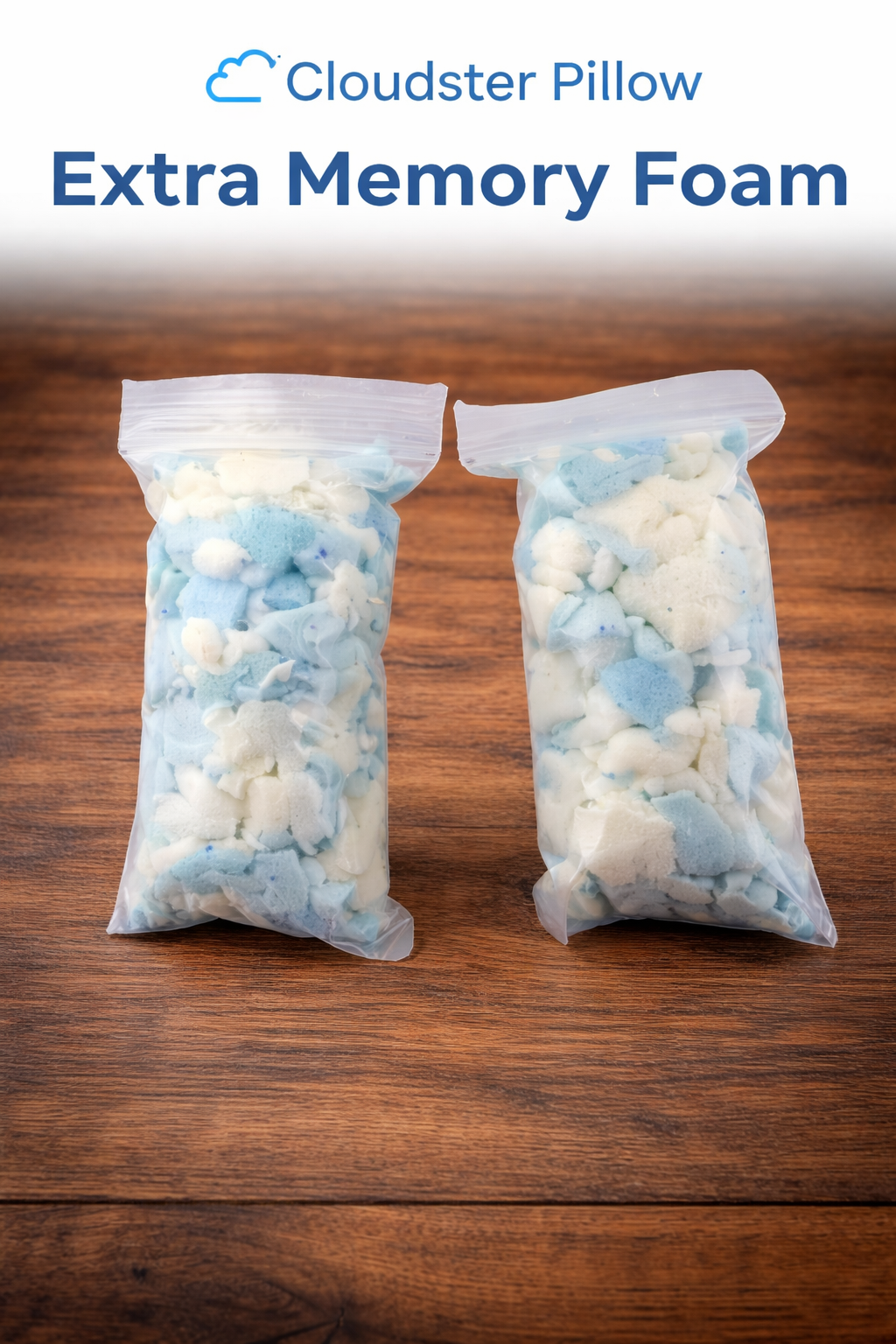 The Cloudster Pillow Replacement Foam Fill is the same shredded cooling gel memory foam included with every Cloudster Pillow—now available in multi-pack options for refilling, fine-tuning, or maintaining multiple setups.